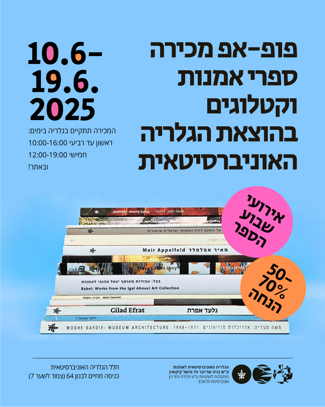 הגלריה האוניברסיטאית מזמינה אתכן.ם לאירוע מכירת פופ-אפ של ספרי אומנות וקטלוגים בהוצאת הגלריה